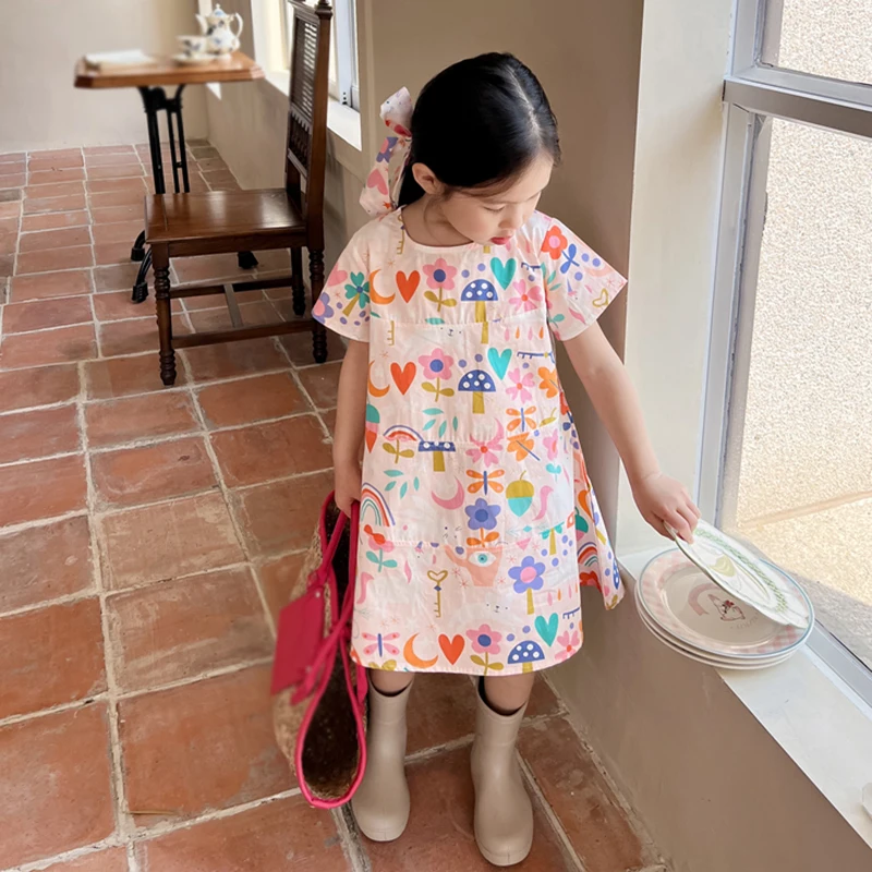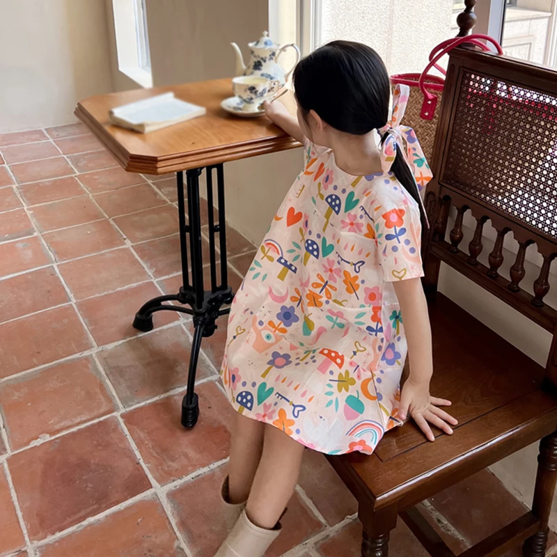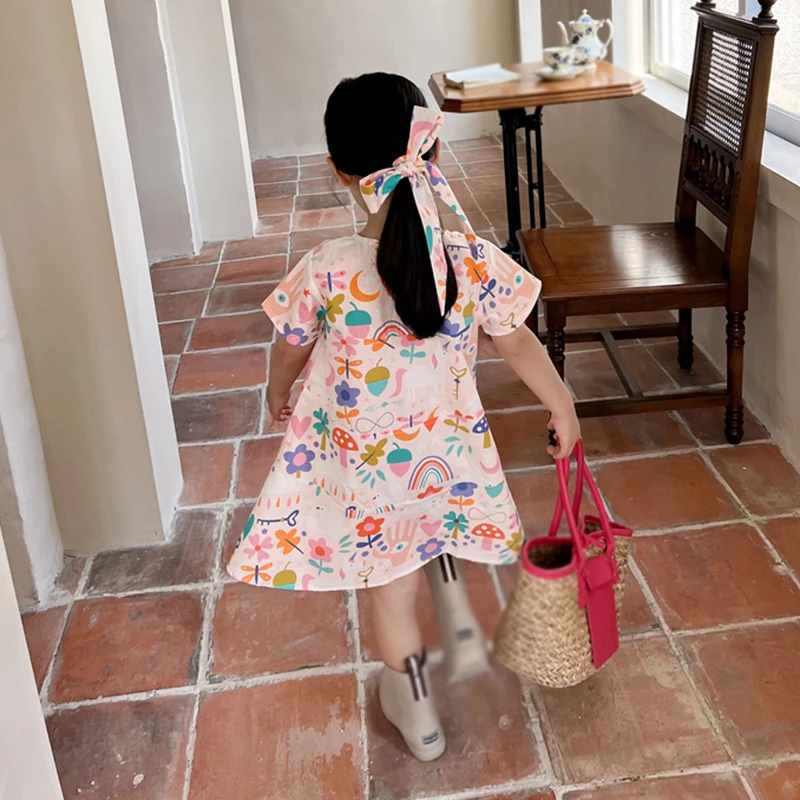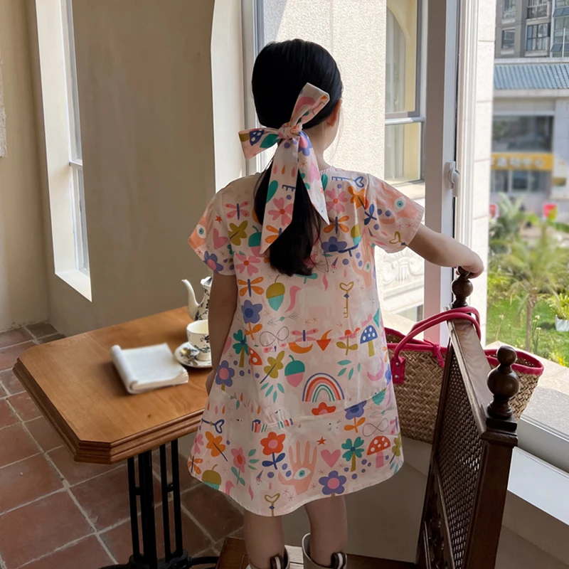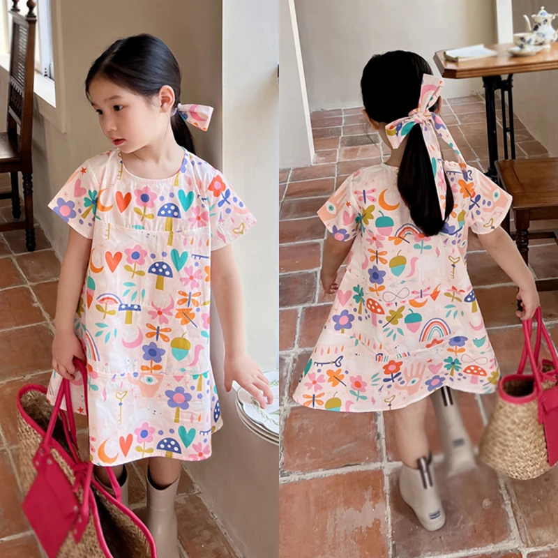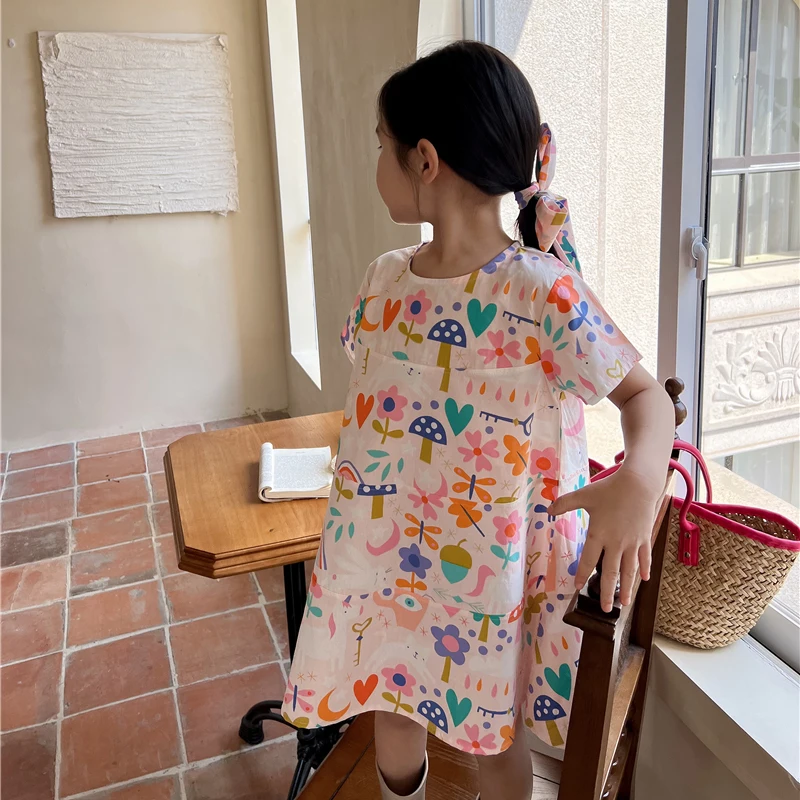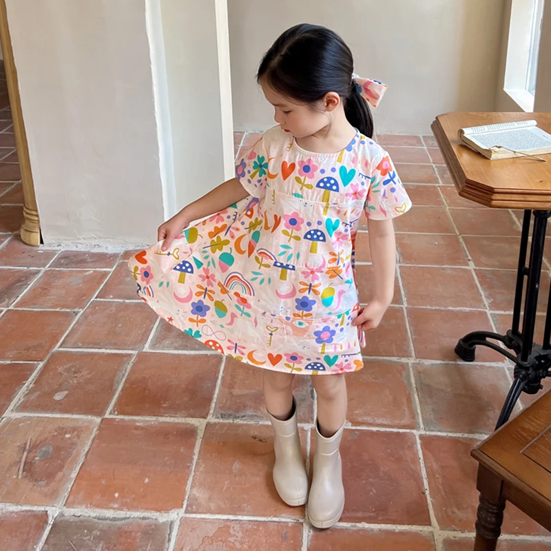 2. التصميم - فستان فتيات الصيف بياقة دائرية بالطراز الكوري، وفستان شاطئ بالطراز الكوري، وفستان أميرة بطباعة زهور يجعل أطفالك أكثر جاذبية ويحصلون على الكثير من الإطراءات.